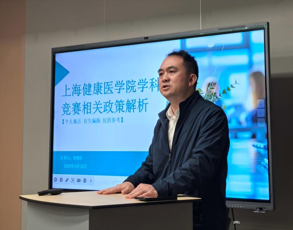 4月10日下午,上海健康医学院2026年第一期“先生有约”教师沙龙在南苑22号楼106会议室顺利举行。本次活动由党委教师工作部联合创新学院主办,以“以师德铸双创之魂,以匠心育创新之才”为主题,面向全校新进教师开展创新创业教育交流,强化师德引领,凝聚育人共识。创新学院院长、基础医学院院长杨智昉,创新学院副院长、教务处副处长南德红,医疗器械学院副院长(挂职)李萍出席活动,党委教师工作部副部长金亮主持沙龙。