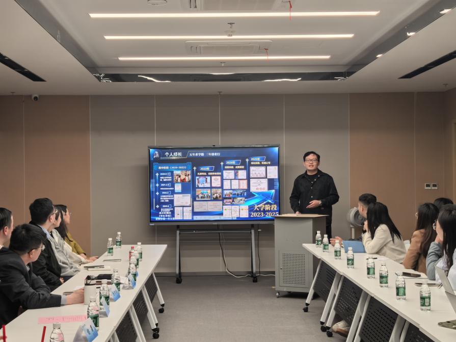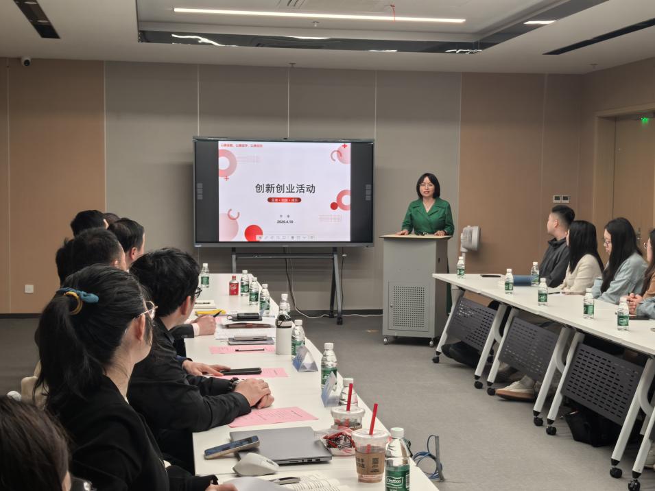 李萍以“以赛促教、以赛促学、以赛促创”为题作分享,介绍了学院创新创业教育总体布局、学分要求及近年竞赛成果。她结合学院带教团队攻坚经验,鼓励新进教师立足专业、深耕育人,让创意在校园落地生根。